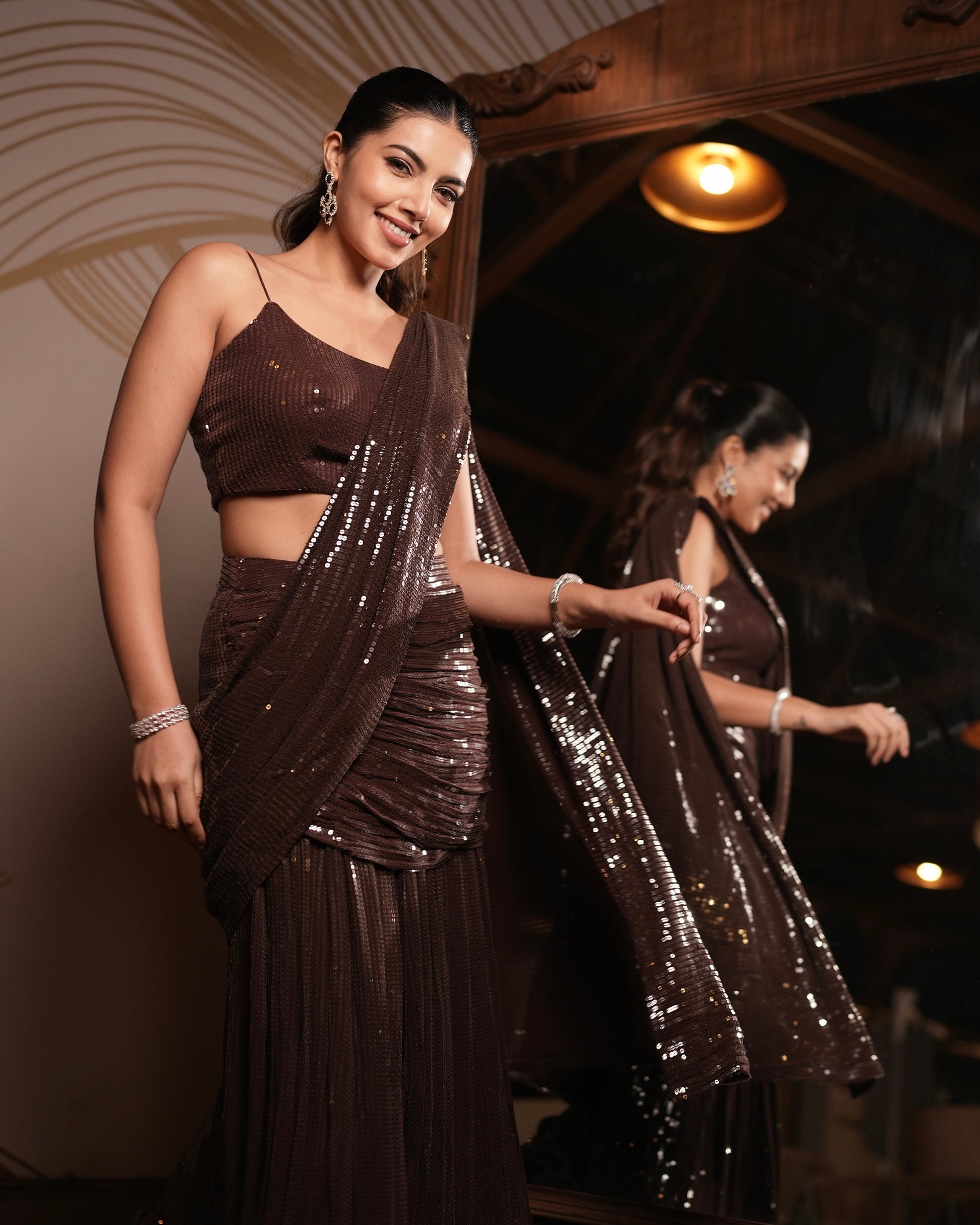 If there’s one piece your Indian wear collection deserves, it’s a sequin saree – timeless, glamorous, and unforgettable.